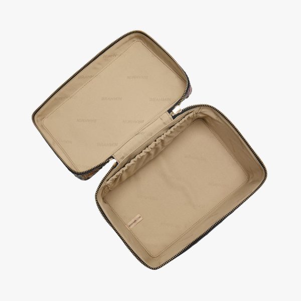 The Charmaine is a must-have travel makeup bag. This structured train case offers plenty of space for your cosmetics and toiletries. Store foundation, blush, powder, mascara, wipes, and more. Use the interior elastic pocket to keep brushes and other items in place. A wide zip-around opening makes it easy to retrieve makeup, while a hinge design lets you quickly view the inside contents. The top handle lays flat for easy storage.