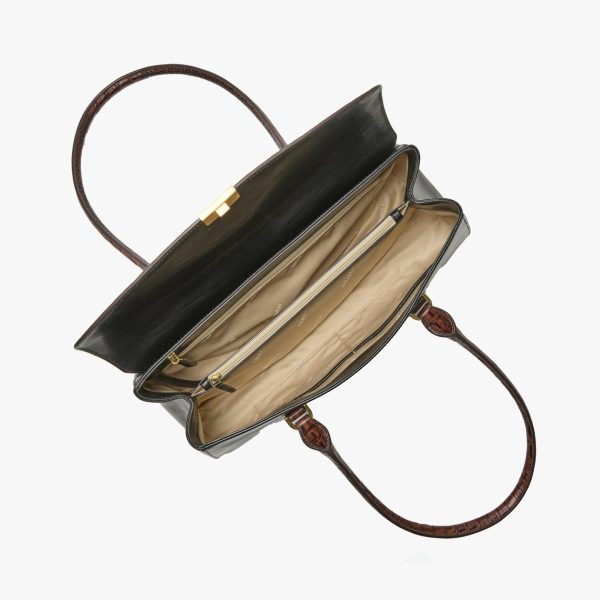 This satchel started with inspiration from a vintage Brahmin bag. We added fresh, modern twists and functional details like the turn lock closure, a back slide in pocket, and rolled handles. The bottom feet offer protection and ease.