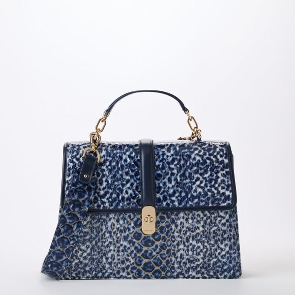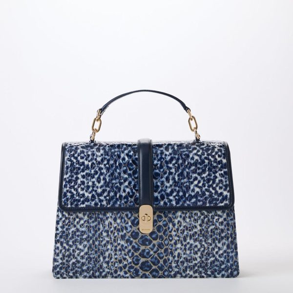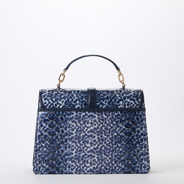 Featured in Navy Meadowport, an abstract tortoise in a classic color. Blues are an all-time fan favorite for easy versatility, this refined snake print feels luxurious, and the soft patent leather brings in high shine. A smooth navy trim gives this balance and dimension. Made with genuine leather.