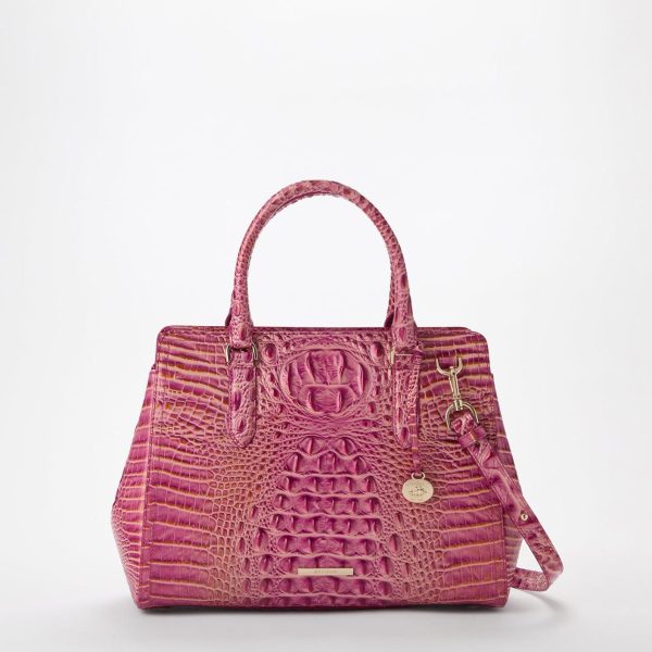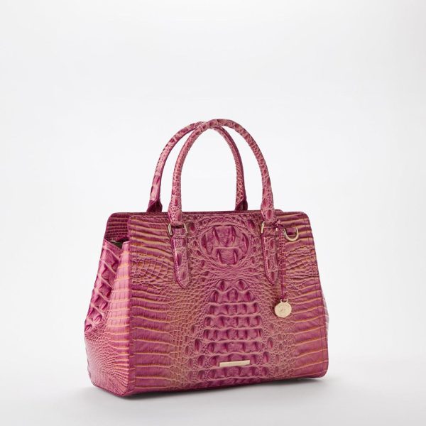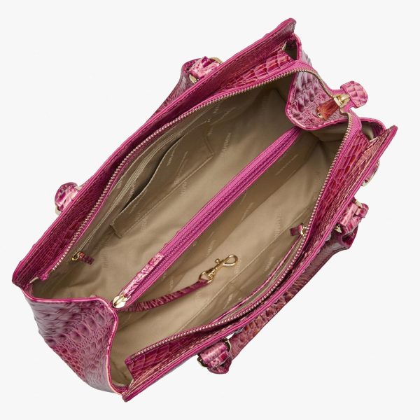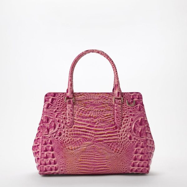Featured in Rouge Blush, a soft feminine rose. The glistening gold accent exudes luxury, and the subtle satin finish feels effortlessly chic. Made with genuine leather.