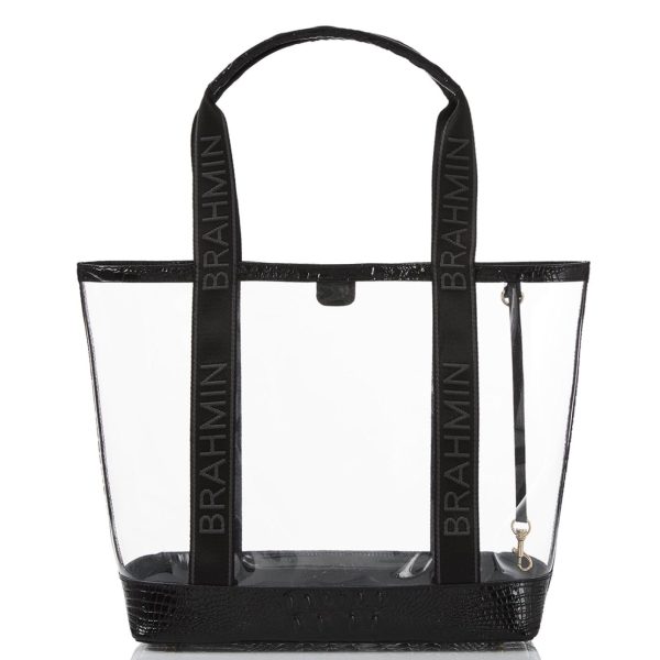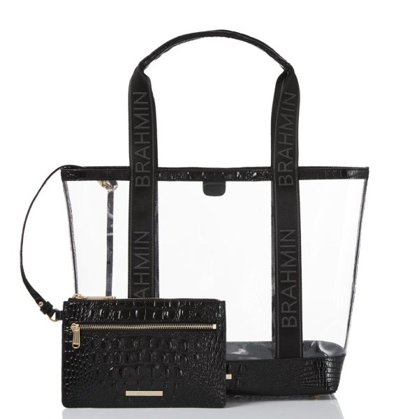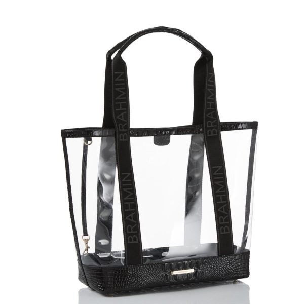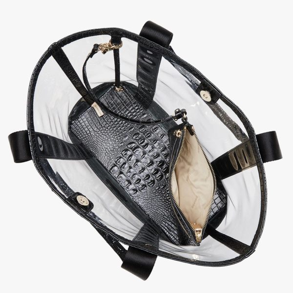 Featured in Seagate, an innovative new collection. Clear vinyl is trimmed with our classic Black Melbourne for a chic twist on a trending style. Seagate offers the perfect, ultra-stylish solution for travel and events requiring transparency. This fresh new collection is where style meets function. Made with genuine leather.